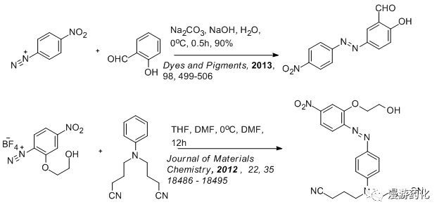 1935 年,F.B.Dains和 F.Eberly用KI去處理重氮鹽,成功合成了碘代苯。隨后重氮化羥基取代和重氮化去胺反應也相繼被發現,加上偶氮反應,形成了比較完善的芳香重氮化合物反應體系。